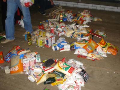 O ingresso seria um kilo de alimento, sendo arrecadado 250 kg de mantimentos que foram distribuídos em cestas básicas às quatro paróquias da Área I. (fotos em anexo).