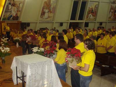 A missa foi presidida pelo Padre Sidinei, com participação da Coordenação da Área 1, os coordenadores atuais e eleitos das Paróquias: Nossa Senhora de Fátima, Nossa Senhora das Graças, Santa Bárbara e Santo Agostinho e a comunidade.