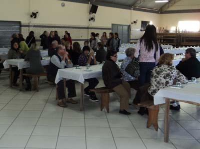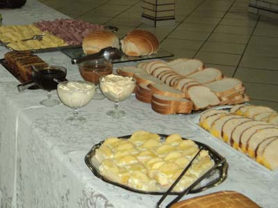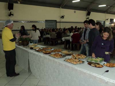 Tivemos o comparecimento de aproximadamente 220 Pessoas, prestigiando e se deliciando de nosso delicioso Café Colonial, tivemos como cardápio: torta de Chocolate, frutas e de Morango, Suco de laranja, salgadinhos diversos, bolos diversos e doces....