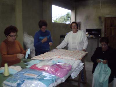 A ÁREA II, SOB A COORDENAÇÃO DA PARÓQUIA SÃO JOSE CONFECCIONA SEMANALMENTE ENXOVAL PARA BEBES FILHOS DE GESTANTES CARENTES. ANEXO FOTOS DE SENHORAS ENCONTRISTAS CONFECCIONADO ROUPAS PARA MONTAGEM DE KITS AOS BEBÊS, ESTA ATIVIDADE TEM O NOME DE "BEBÊ SHALOM".