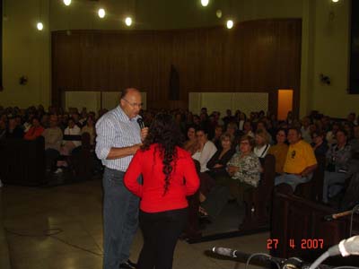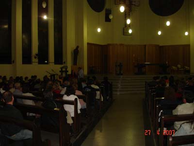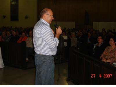 No último dia 27/04 a Área II trouxe Padre Evaristo de Biasi, que proferiu palestra na Igreja São Paulo Apóstolo, bairro Michel em Criciúma/SC, cujo tema foi: ESPIRITUALIDADE FAMILIAR. Palestra muito rica em conteudo espiritual, conselho e informações as famílias junto as coisas de Deus. Participaram aproximadamente 600 pessoas, que sairam muito satisfeita e felizes com que ouviram do Padre Evaristo de Biasi. Como gesto concreto foi solicitado que cada participante levasse um Kilo de Alimento não perecivel. Foram arrecadados aproximadamente 700 kg de alimentos que parte ficou na paróquia São Paulo Apóstolo para ser doado a pessoas carentes da comunidade e parte foi encaminhada ao Seminário do Caravaggio por solicitação do Padre Evaristo.
