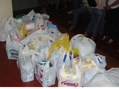 de limpeza que serão distribuidos pelo Casal Coordenador da Paróquia São