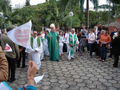 Sua Exa. Revma. Dom Paulo de Conto, Bispo Diocesano de Criciúma, esteve em visita pastoral à Paróquia Nossa Senhora da Conceição de Urussanga, em comemoração aos 10 anos de fundação da Diocese de Criciúma, à qual pertence esta paróquia.