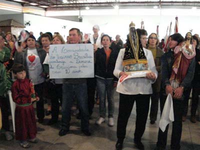 Participaram do evento muitos fiéis representando todas as comunidades da paróquia, com as imagens dos seus padroeiros.