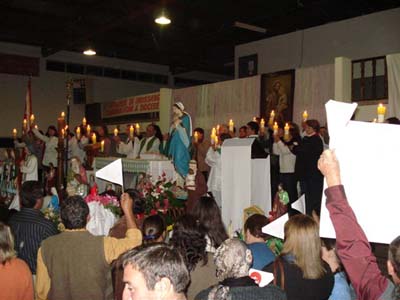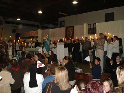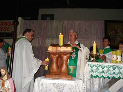 No final da celebração da Santa Missa, Dom Paulo presenteou cada comunidade da paróquia, oferecendo uma vela, todas acendidas na chama da Lampada das Santas Missões Populares.