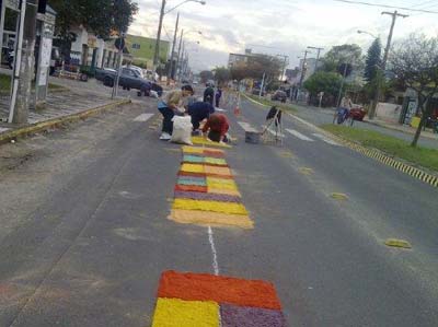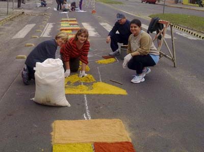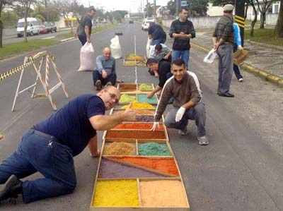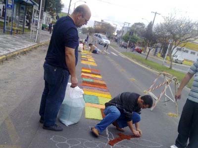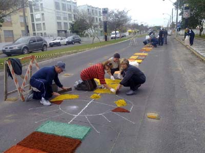 Aconteceu no dia 23 de junho de 2011 a comemoração de Corpus Cristi, onde o Movimento de Irmãos da Paróquia Sagrada Familia participaram na confeção dos tapetes.