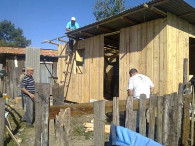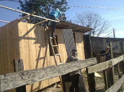voluntariamente (multirão) para a construção da casa, onde foram angariados os
