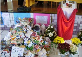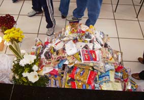 Fez parte da gincana, como cumprimento de uma tarefa relâmpago, a arrecadação de alimentos, em que foram arrecadados 577 embalagens, de feijão, arroz, farinha de milho e de mandioca, sal, café, massa, e outros.
