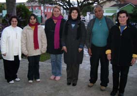 À frente dos Pavilhões do Município, do Estado e da Nação, estavam presentes alguns representantes da paróquia local.