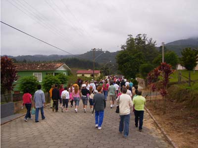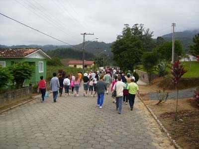 Acompanharam nossa caminhada, fiéis das comunidades do Centro, do Rio Carvão, Rio Maior, Bairro da Estação e Santana e ainda pessoas que iam tomando a caminhada pelo seu percurso, além de Encontristas que seguiram de suas paróquias, de Morro da Fumaça e Cocal do Sul, juntando-se todos aos pés da Imagem da Santa, para um momento de oração, marcando o final da romaria.